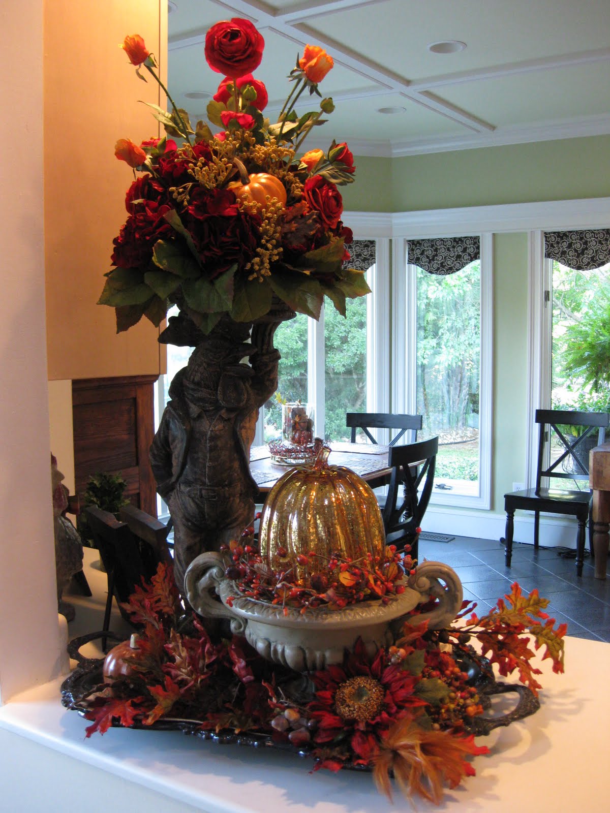 Hi Rhonda! Oh, this is gorgeous! First of all your Rooster container is gorgeous and what an outstanding job you did on the floral arranging! The touch of the pretty glass pumpkin is perfect! I love it. Thank you for popping in to see me!